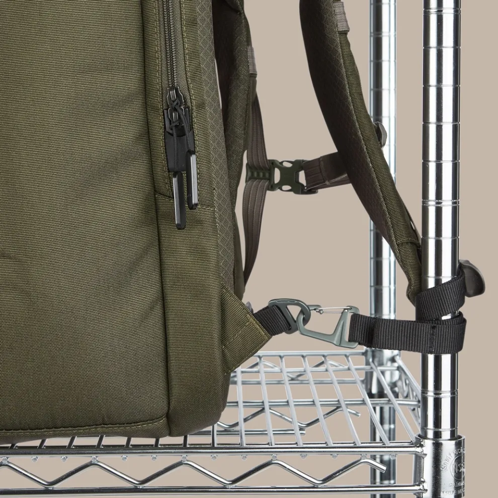 Main fabric: 100% recycled polyester / Coating: PU / Lining: 100% recycled polyester / Strap webbing : 100% polyamide