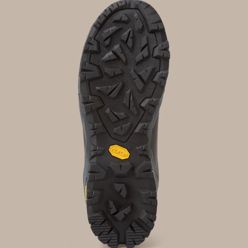 Vibram soles contains a stability perimeter, a toe bumper and deeply set lugs in the heel which self-clean and provide traction on mixed terrains.
