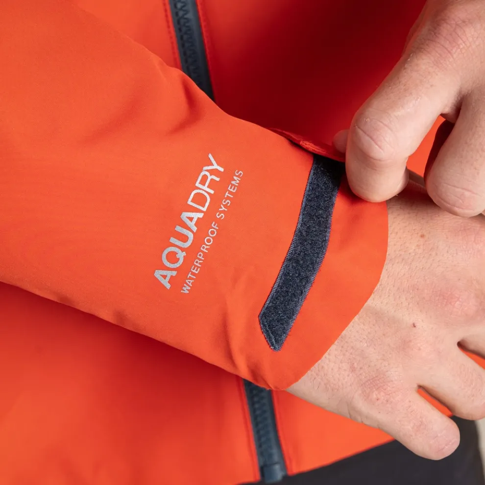 AquaDry guaranteed waterproof and breathable fabric with fully taped seams. Keeping you dry in moderate to heavy downpours, whilst allowing moisture to escape for comfort on the move.