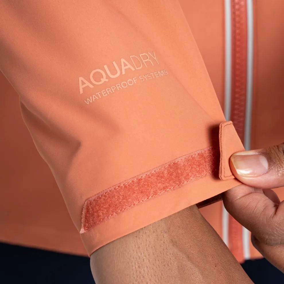 AquaDry guaranteed waterproof and breathable fabric with fully taped seams. Keeping you dry in moderate to heavy downpours, whilst allowing moisture to escape for comfort on the move.